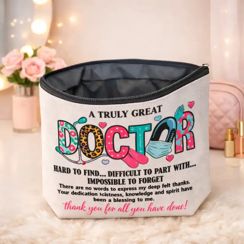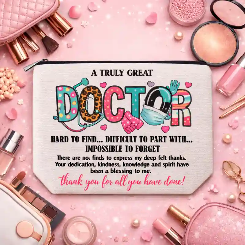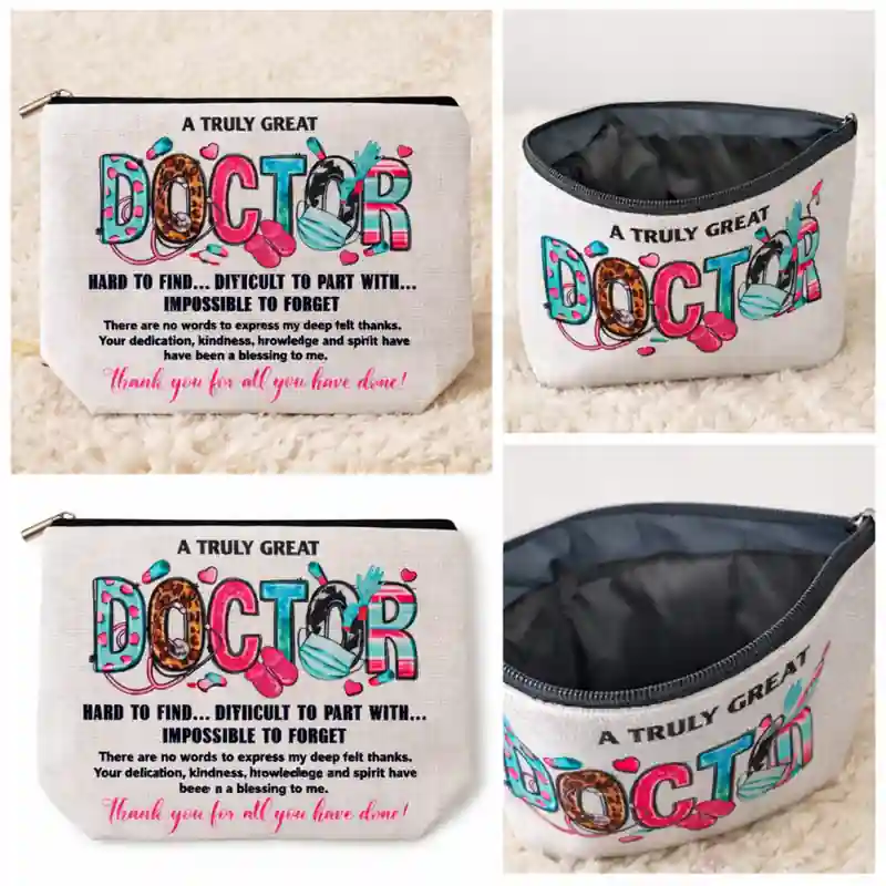 Anche visivamente si distingue bene, perché la parola DOCTOR è resa in modo creativo e colorato, mentre il lungo testo di ringraziamento trasforma la pochette in qualcosa di più personale e memorabile. È quindi adatta a chi cerca un accessorio utile, ma anche carico di significato e pensato per lasciare un ricordo positivo.