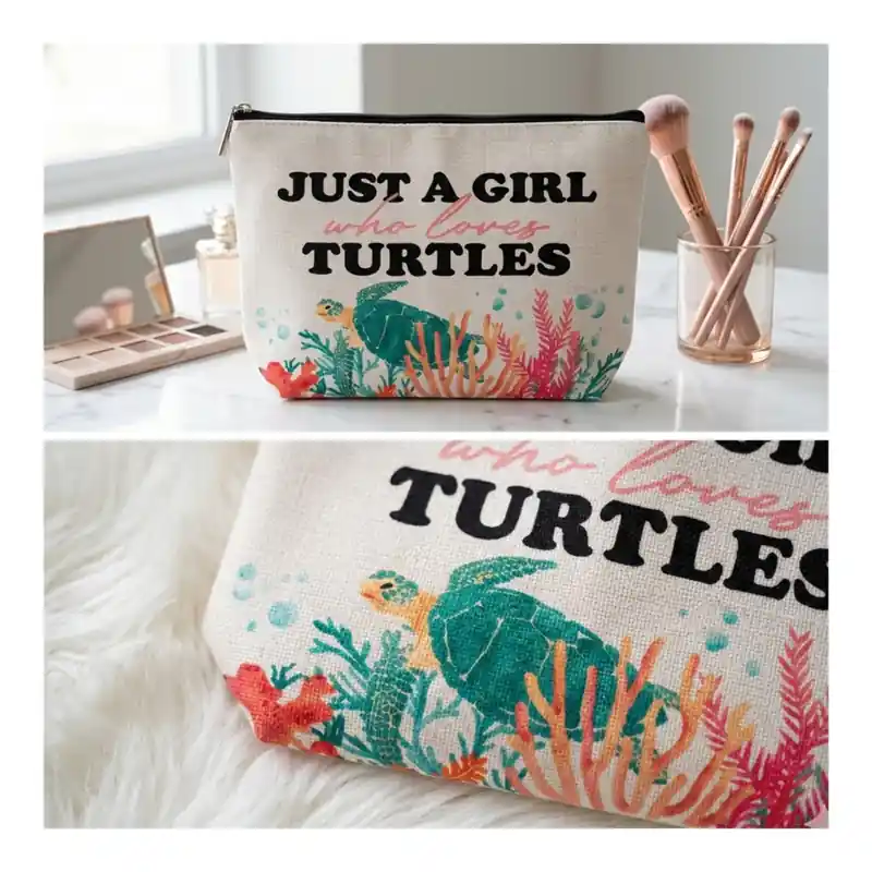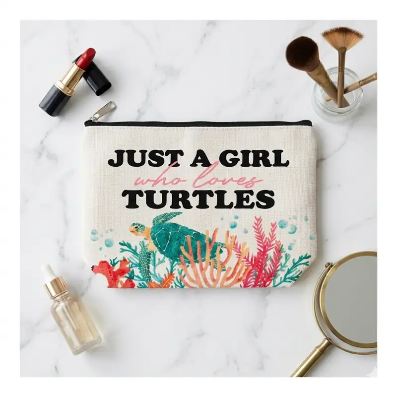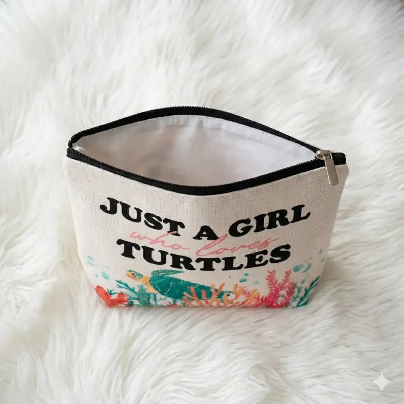 Questa pochette Just a Girl Who Loves Turtles è anche un’ottima idea regalo per chi ama le tartarughe, perché unisce utilità e messaggio in modo semplice e immediato.