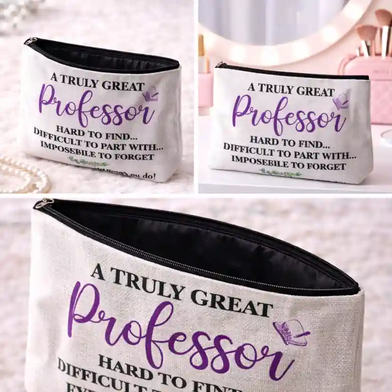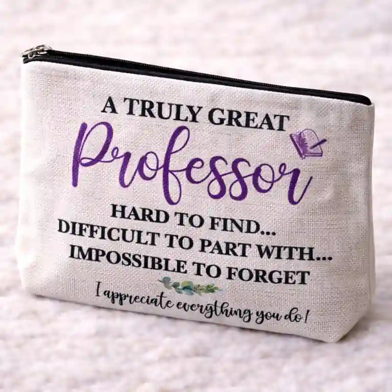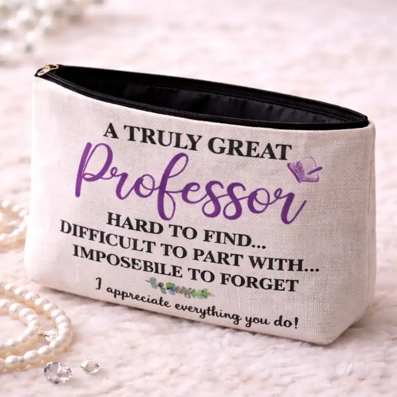 Questa pochette dedicata ad un professoressa si distingue subito per la sua grafica frontale costruita attorno alla parola Professor, resa protagonista assoluta del design con un lettering viola grande e molto visibile. Si tratta di un accessorio pensato come dedica di ringraziamento per un professore, con un messaggio immediato, affettuoso e facile da riconoscere.